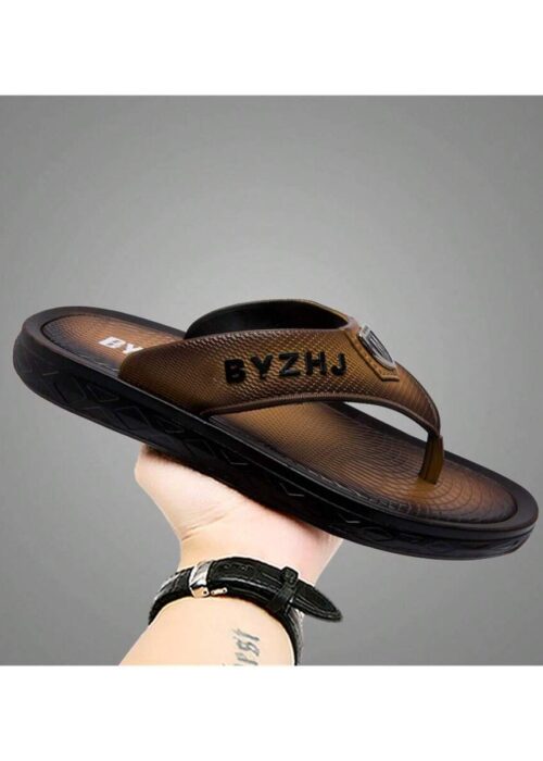 Men’s Spring To Summer Casual Waterproof Two Tone Flat Flip Flops, Beach Sandals