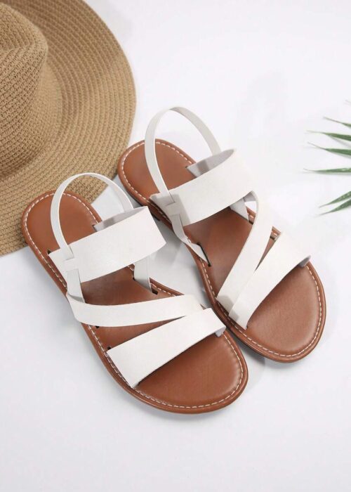 Korean Style Casual Flat Sandals Women Shoes, Outdoor Wear, Open Toe, Spring Summer New Woven Roman Beach Sandals, Fashionable French Flats For Women With Skirts When Going Out To The Beach Or Apartment, White, Flat, Strap , Beige, Black, Orange, White, Yellow, Purple, Grey, Gold, Silver, Blue, Green, Rose Red, Brown, French Leopard Print, Formal Shoes, Holiday Sandals, Bohemian Style Toe Beach Navy Blue Walking Shoes, Crystal Shoes For Women, Cute Flat Loafers, Flat Sandals With Thick Soles, Tie-Up, Shiny Glittering, Mule Shoes, Slippers