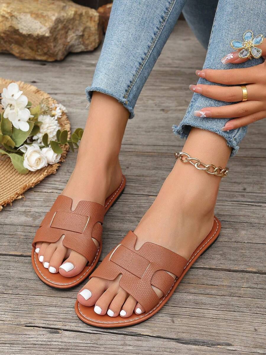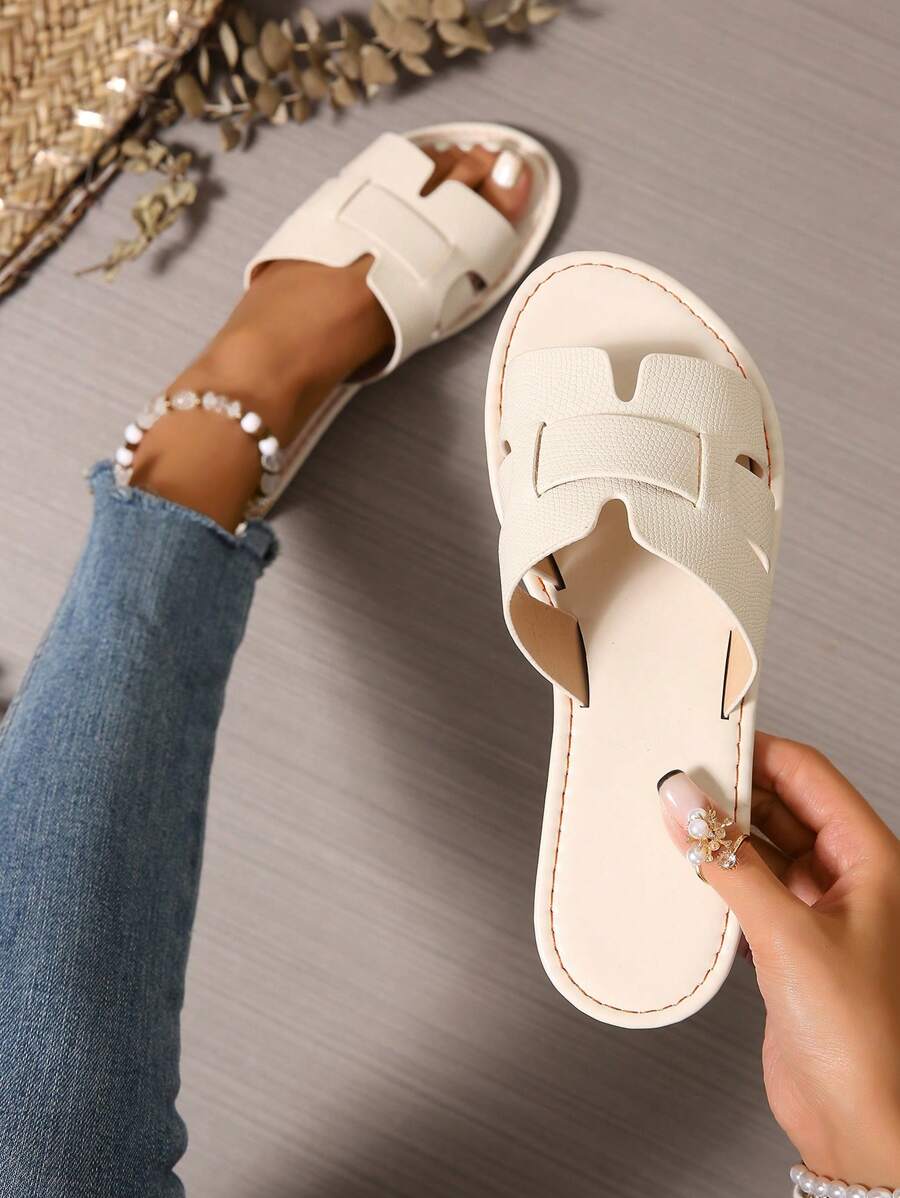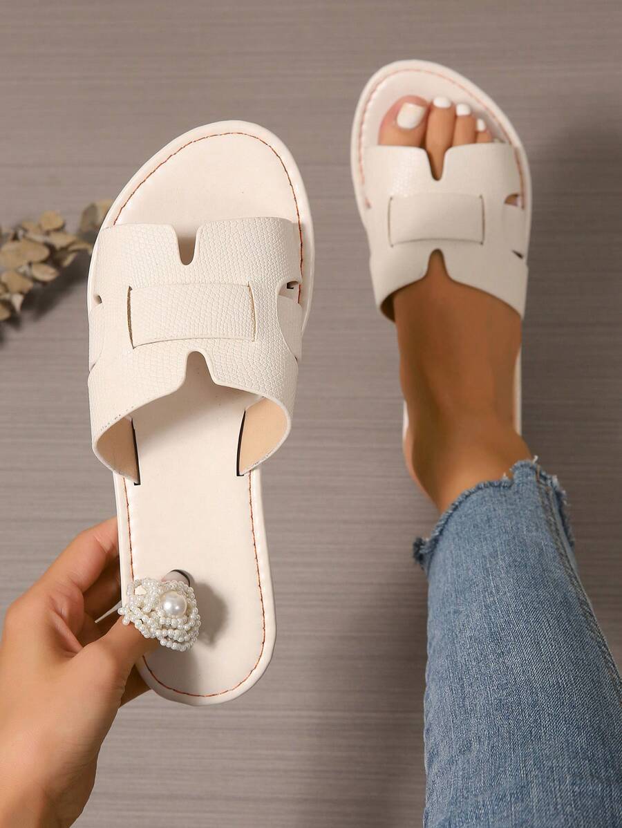 Korean Style Casual Flat Sandals Women Shoes, Outdoor Wear, Open Toe, Spring Summer New Woven Roman Beach Sandals, Fashionable French Flats For Women With Skirts When Going Out To The Beach Or Apartment, White, Flat, Strap , Beige, Black, Orange, White, Yellow, Purple, Grey, Gold, Silver, Blue, Green, Rose Red, Brown, French Leopard Print, Formal Shoes, Holiday Sandals, Bohemian Style Toe Beach Navy Blue Walking Shoes, Crystal Shoes For Women, Cute Flat Loafers, Flat Sandals With Thick Soles, Tie-Up, Shiny Glittering, Mule Shoes, Slippers