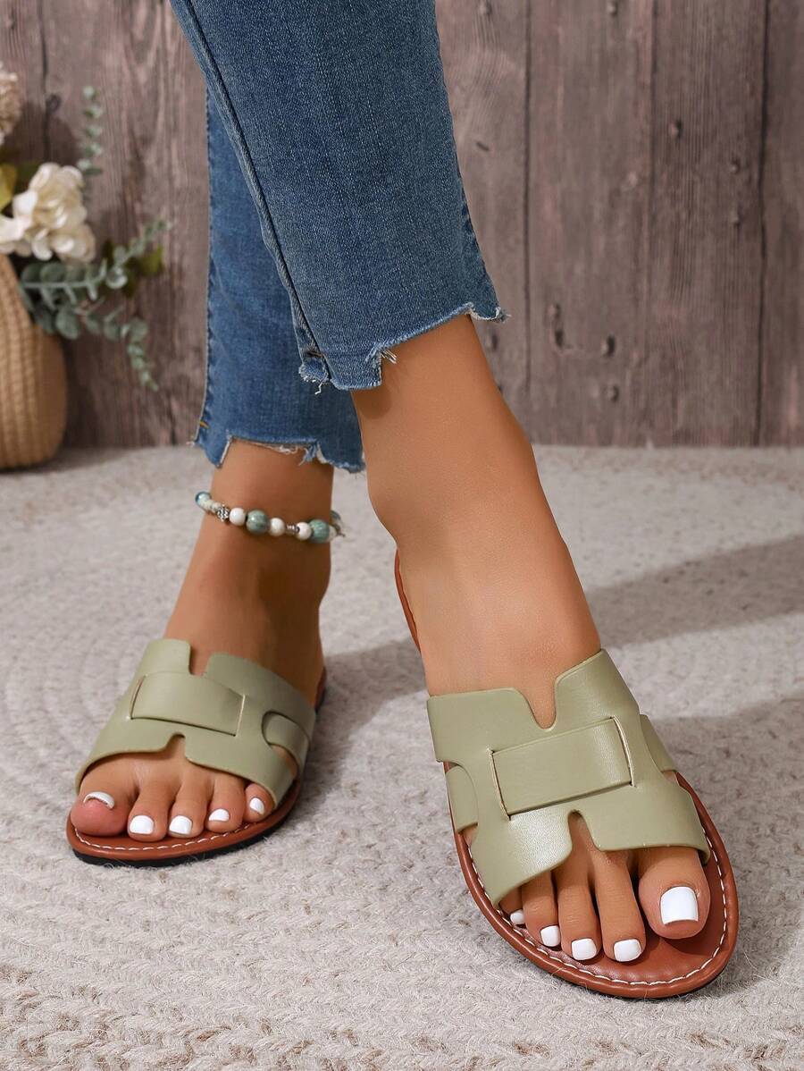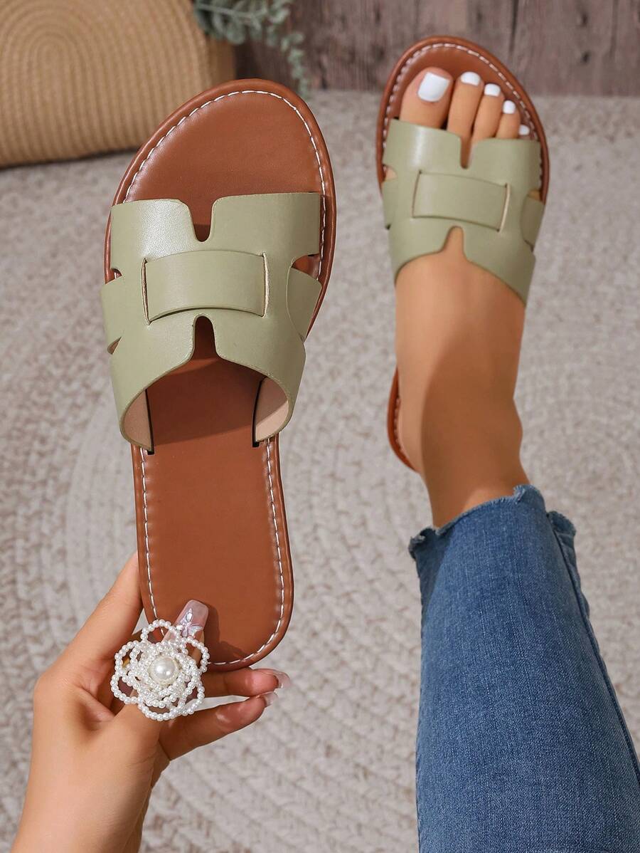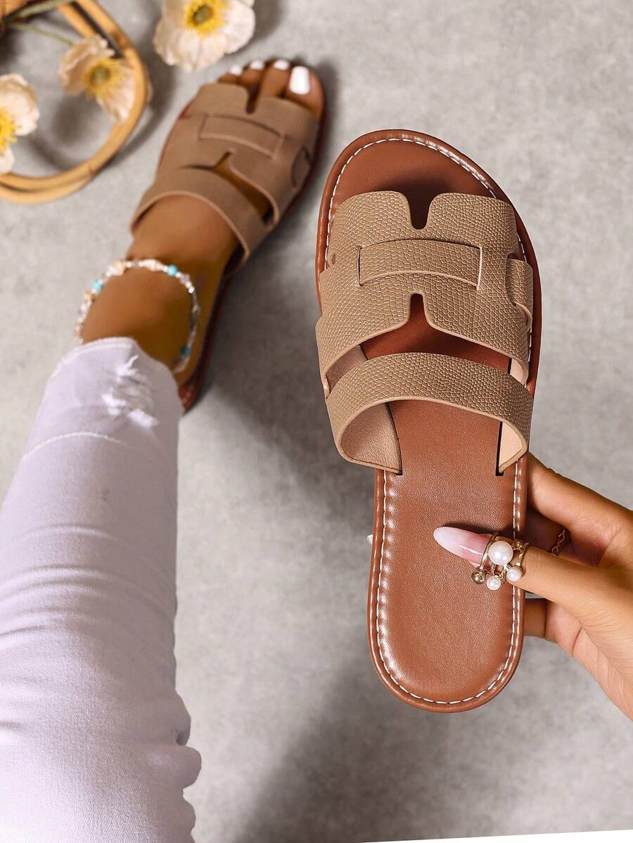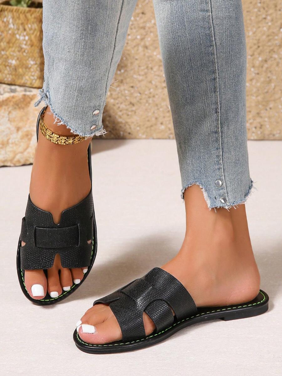 Korean Style Casual Flat Sandals Women Shoes, Outdoor Wear, Open Toe, Spring Summer New Woven Roman Beach Sandals, Fashionable French Flats For Women With Skirts When Going Out To The Beach Or Apartment, White, Flat, Strap , Beige, Black, Orange, White, Yellow, Purple, Grey, Gold, Silver, Blue, Green, Rose Red, Brown, French Leopard Print, Formal Shoes, Holiday Sandals, Bohemian Style Toe Beach Navy Blue Walking Shoes, Crystal Shoes For Women, Cute Flat Loafers, Flat Sandals With Thick Soles, Tie-Up, Shiny Glittering, Mule Shoes, Slippers